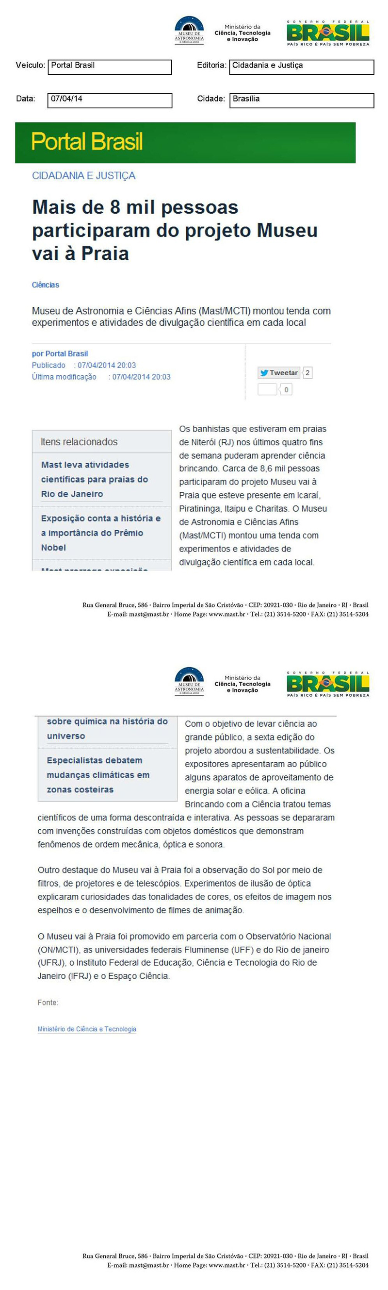 Portal Brasil | Mais de 8 mil pessoas participaram do projeto Museu Vai à Praia