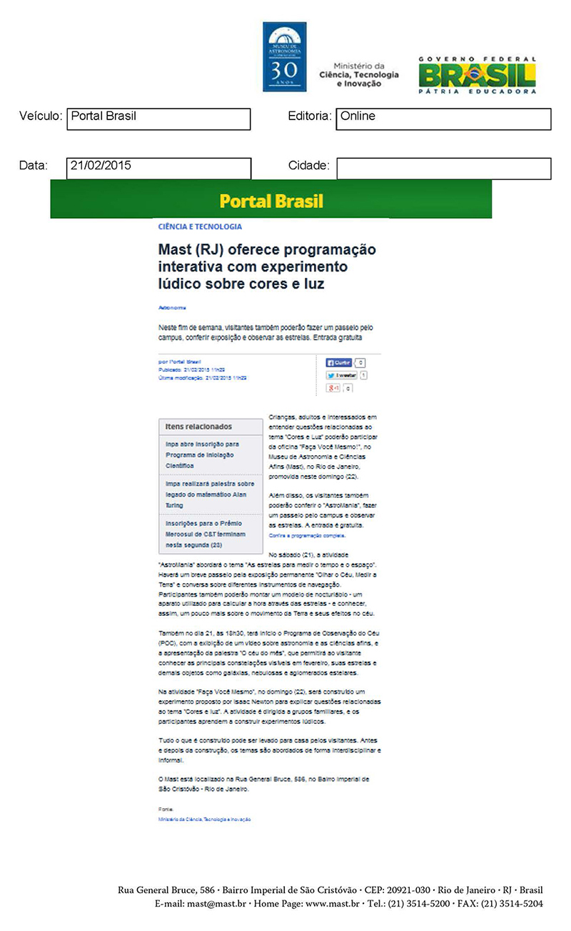 Portal Brasil | MAST (RJ) oferece programação interativa com experimento lúdico sobre cores e luz