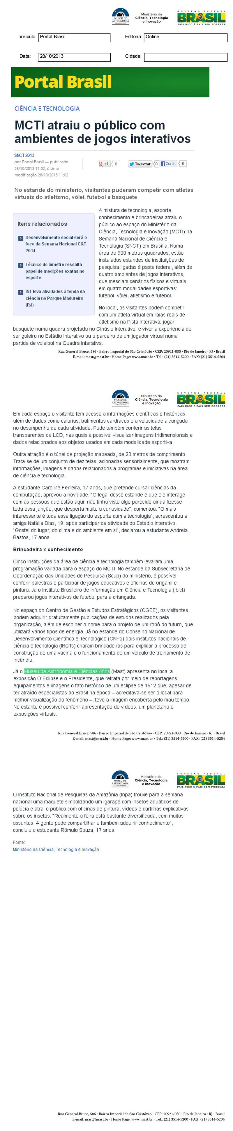 Portal Brasil | MCTI atraiu o público com ambientes de jogos interativos