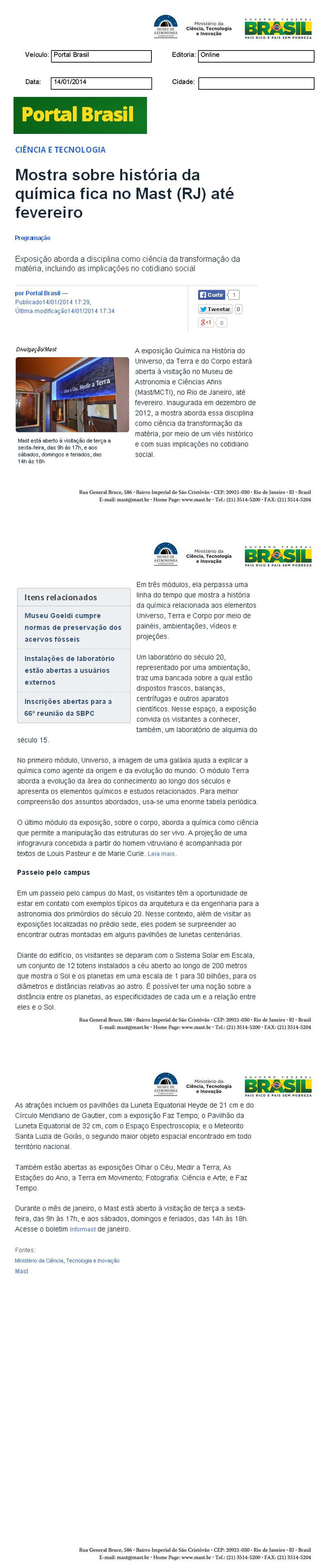 Portal Brasil | Mostra sobre história da química fica no MAST (RJ) até fevereiro