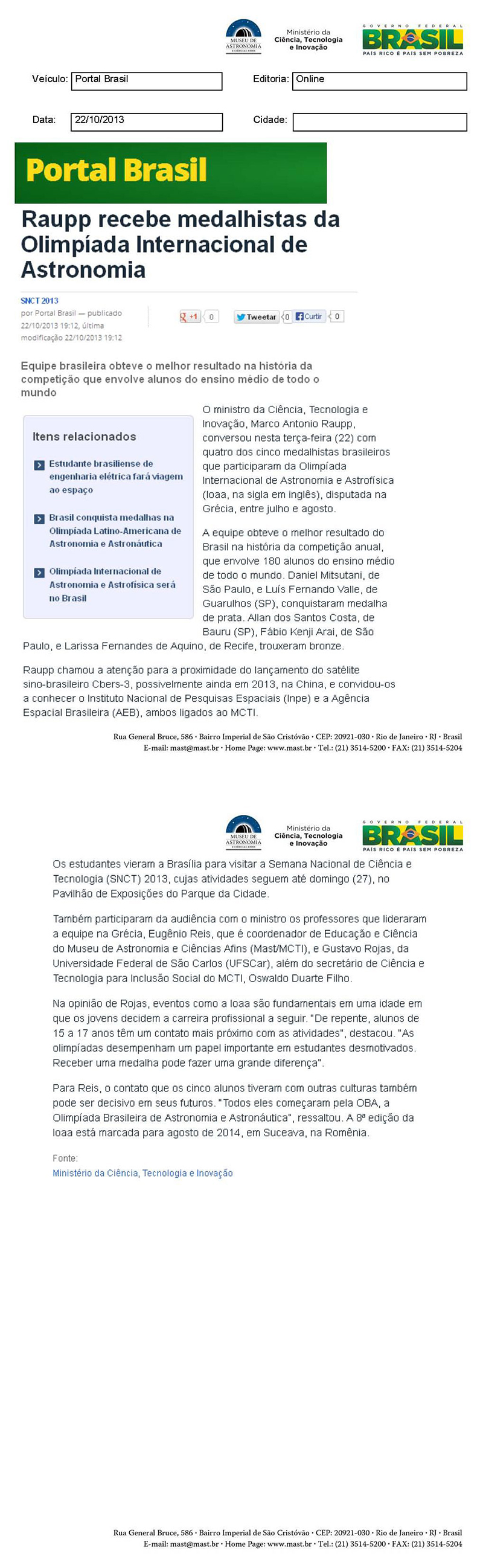 Portal Brasil | Raupp recebe medalhistas de Olimpíada Internacional de Astronomia