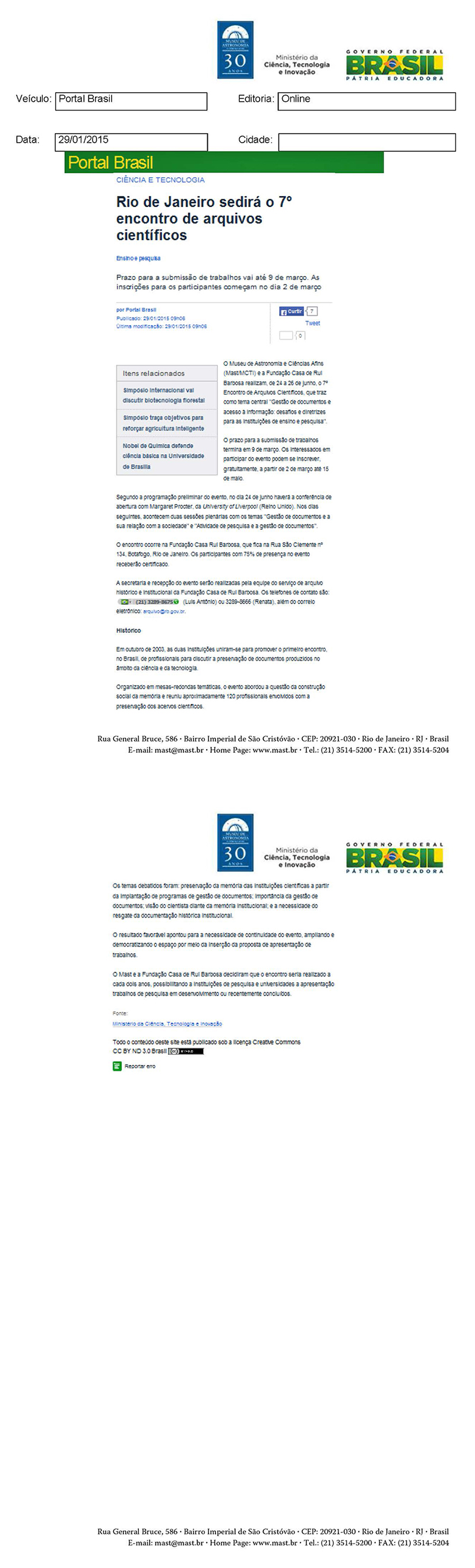 Portal Brasil | Rio de Janeiro sedirá o 7º encontro de arquivos científicos