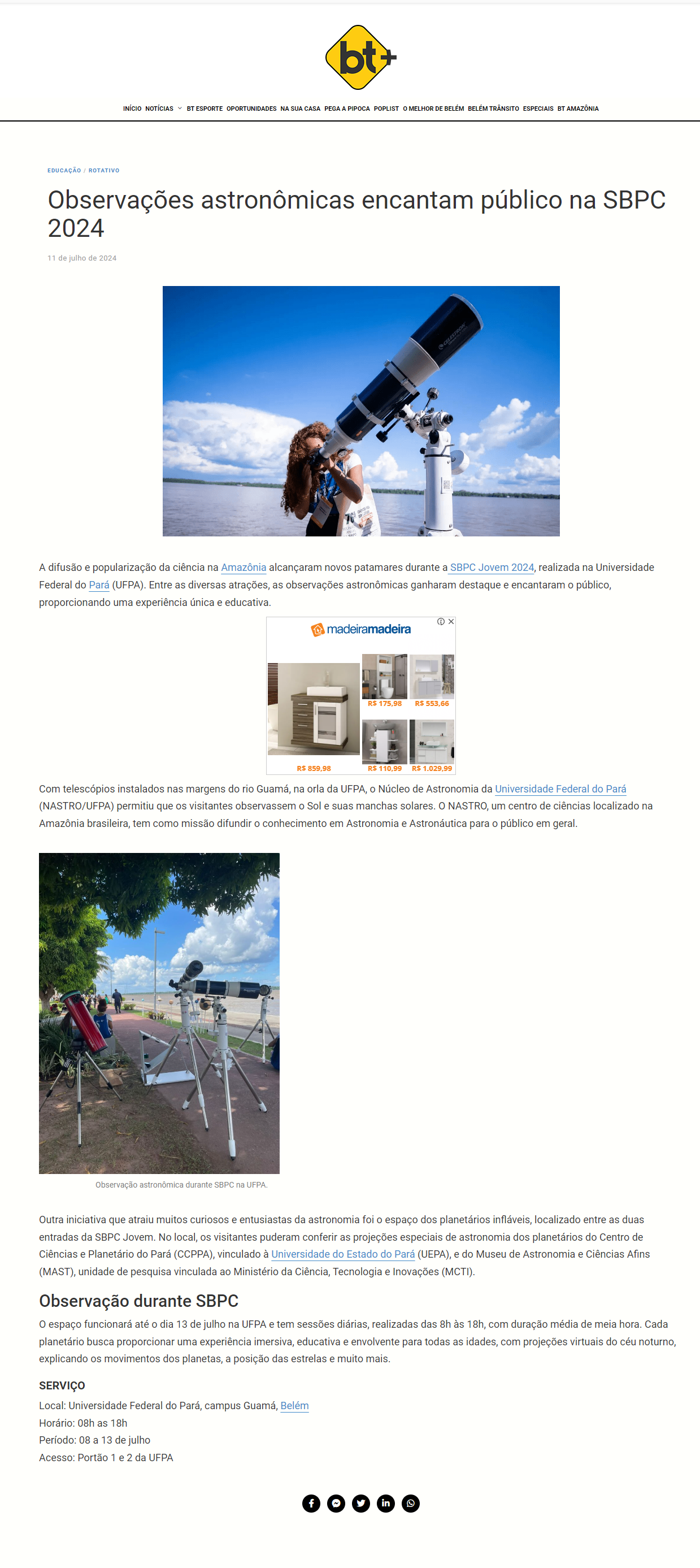 Portal bt+ | Observações astronômicas encantam público na SBPC 2024