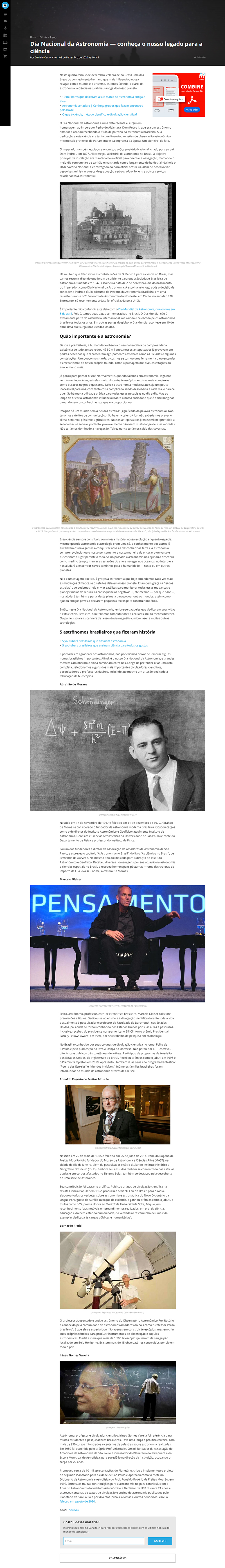 Portal Canaltech - MAST na reportagem "Dia Nacional da Astronomia | Conheça o nosso legado para a ciência"
