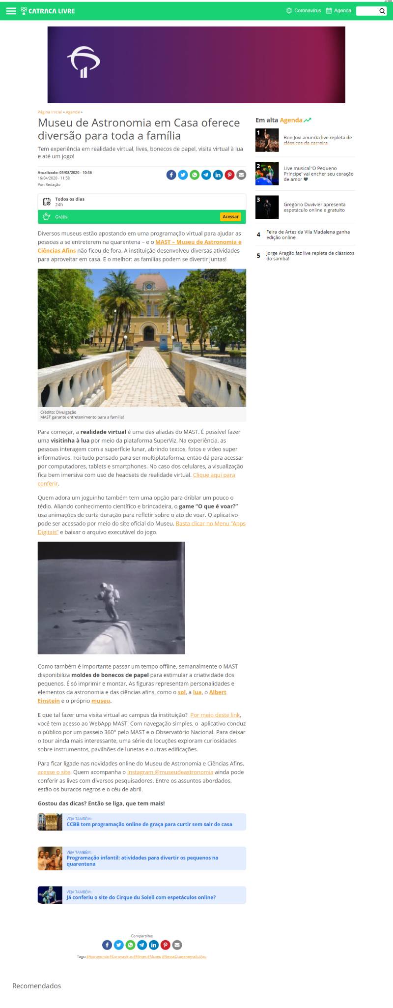 Portal Catraca Livre (atualização) | MAST em Casa oferece diversão para toda a família