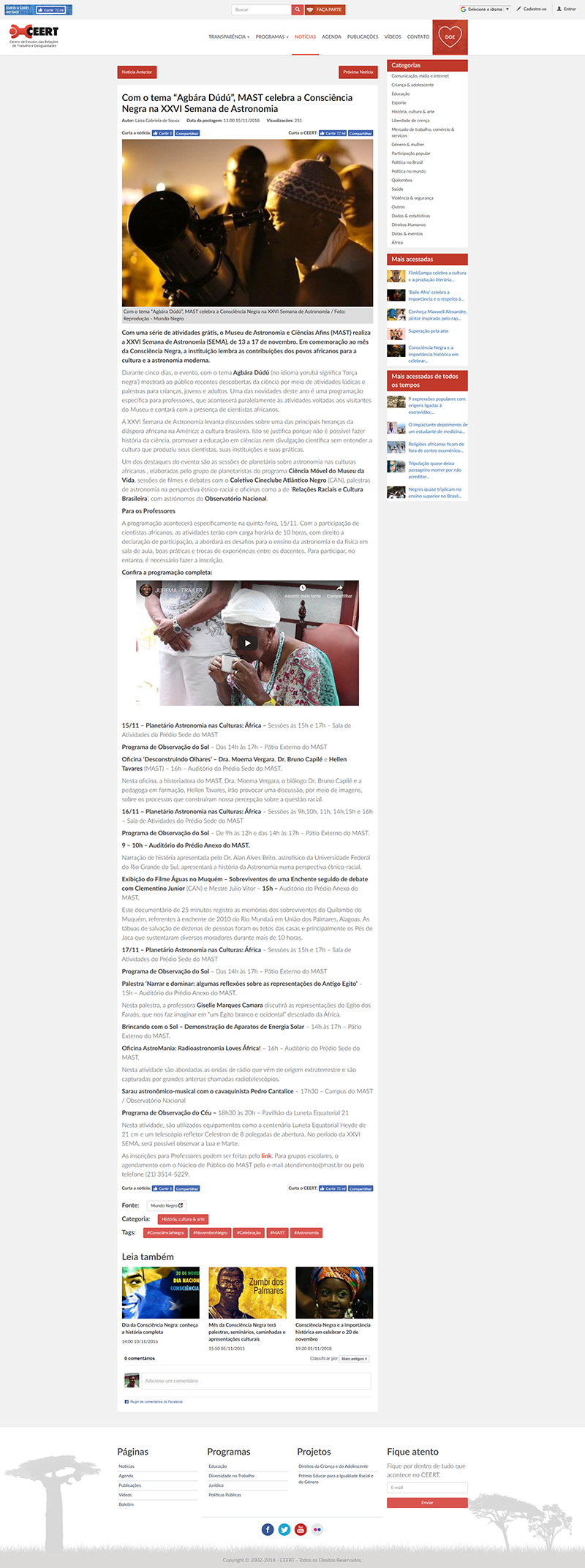 Portal CEERT | Com o tema “Agbára Dúdú”, MAST celebra a Consciência Negra na XXVI Semana de Astronomia