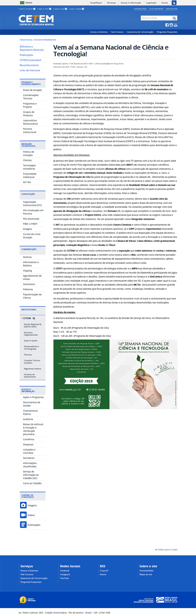 Portal CETEM | 16ª Semana Nacional de Ciência e Tecnologia