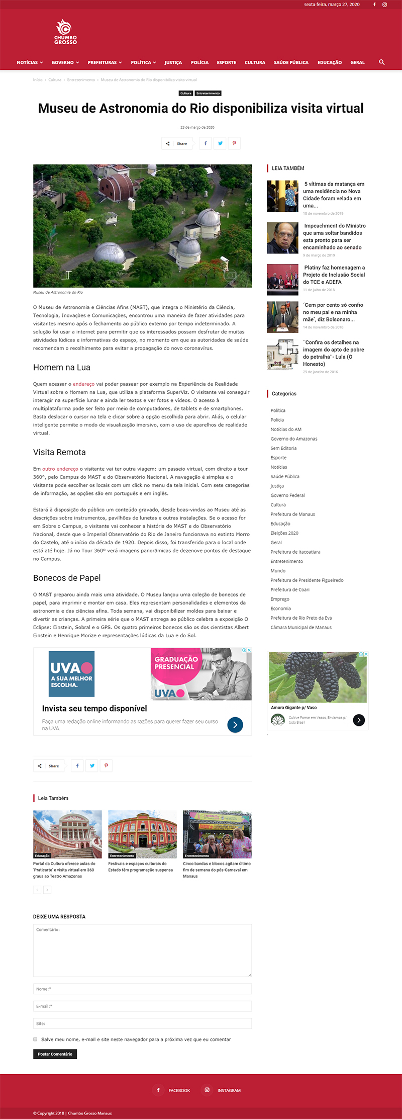 Portal Chumbo Grosso Manaus (Manaus - AM) | MAST disponibiliza visita virtual