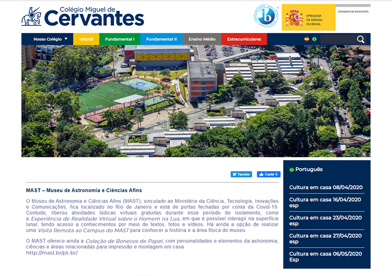 Portal CMC - Colégio Miguel Cervantes (São Paulo-SP) | MAST disponibiliza visita virtual e moldes de brinquedos de papel