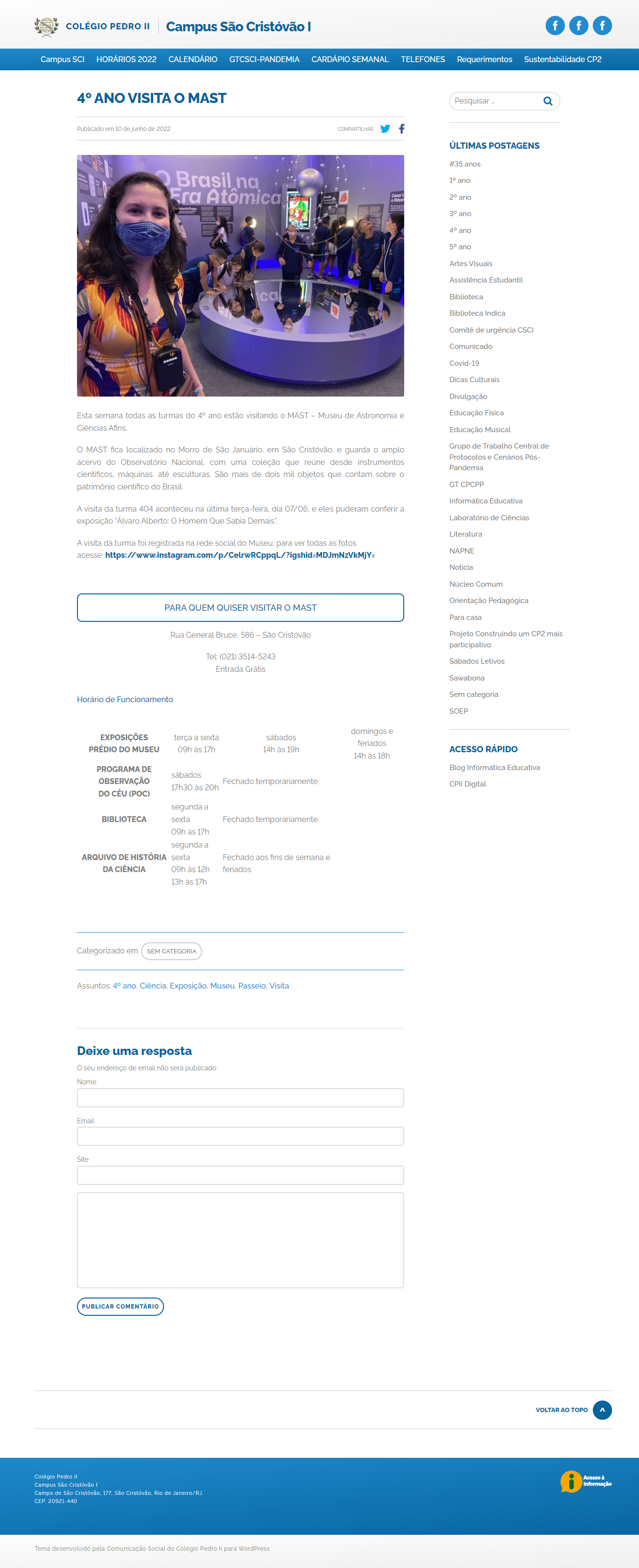 Portal Colégio Pedro II - MAST é visitado por todas as turmas do 4º ano