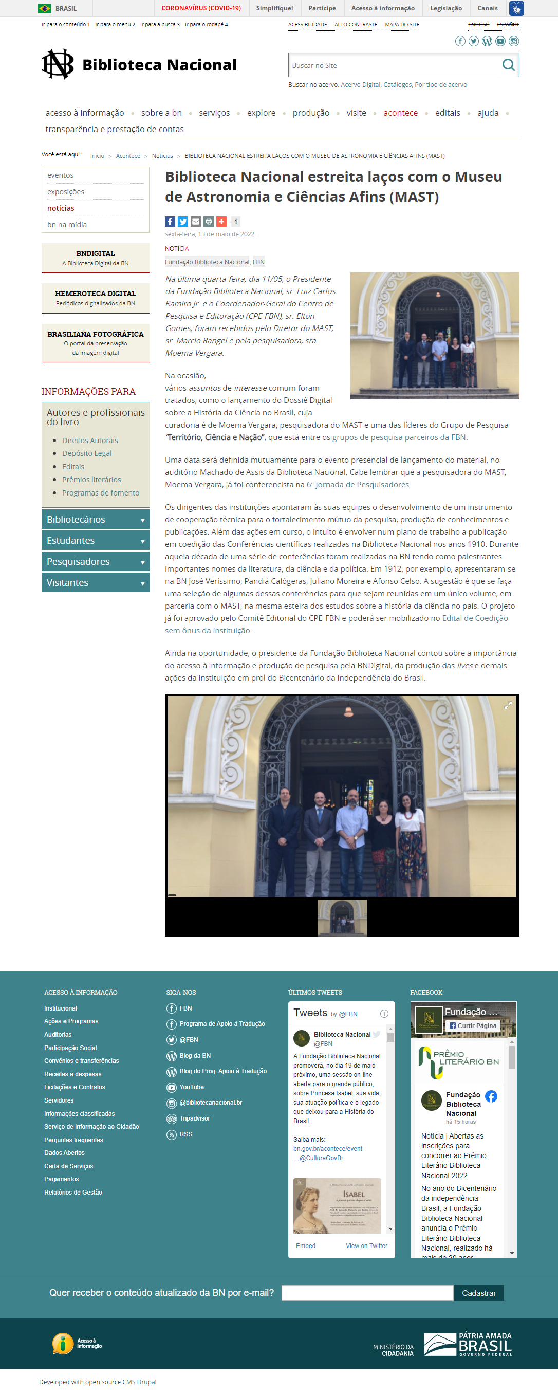 Portal da Biblioteca Nacional - Biblioteca Nacional estreita laços com o Museu de Astronomia e Ciências Afins (MAST)