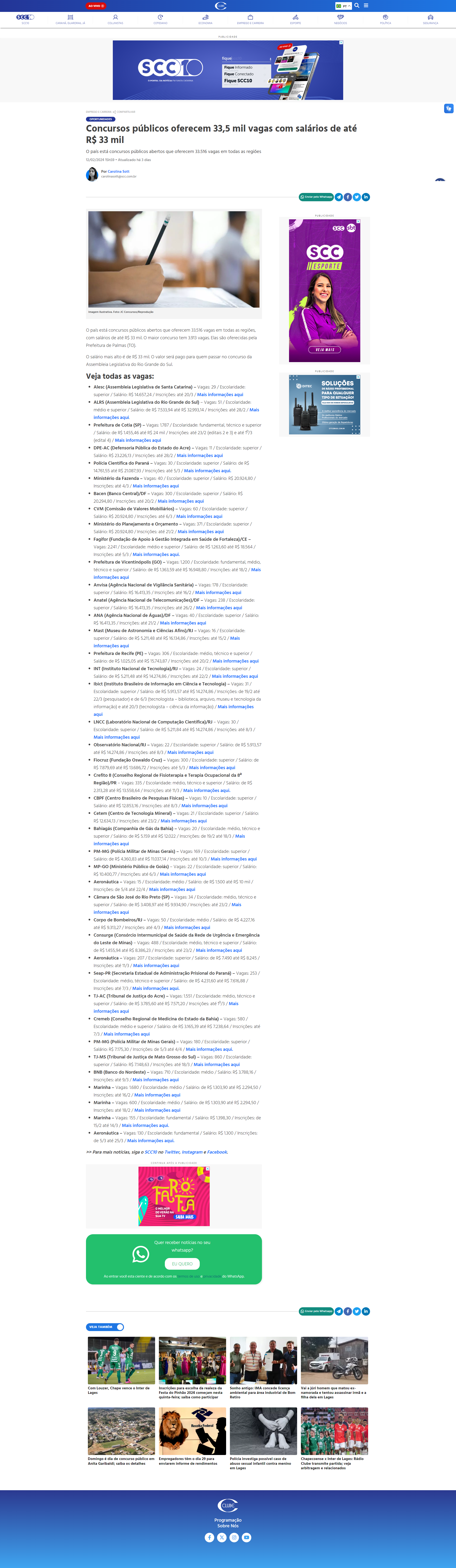 Portal de Notícias SCC10 - Concursos públicos oferecem 33,5 mil vagas com salários de até R$ 33 mil