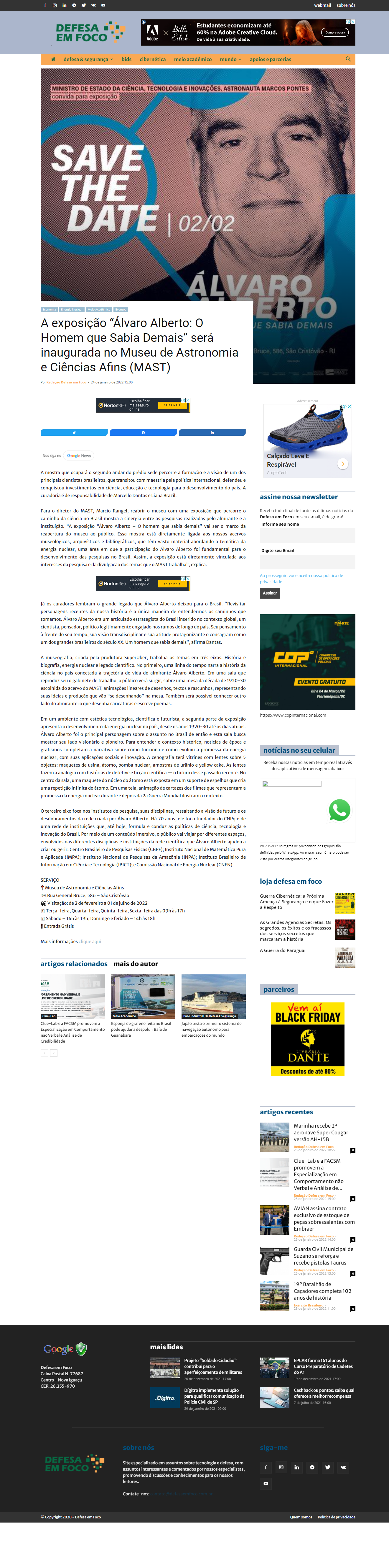 Portal Defesa em Foco - A exposição “Álvaro Alberto: O Homem que Sabia Demais” será inaugurada no Museu de Astronomia e Ciências Afins (MAST)