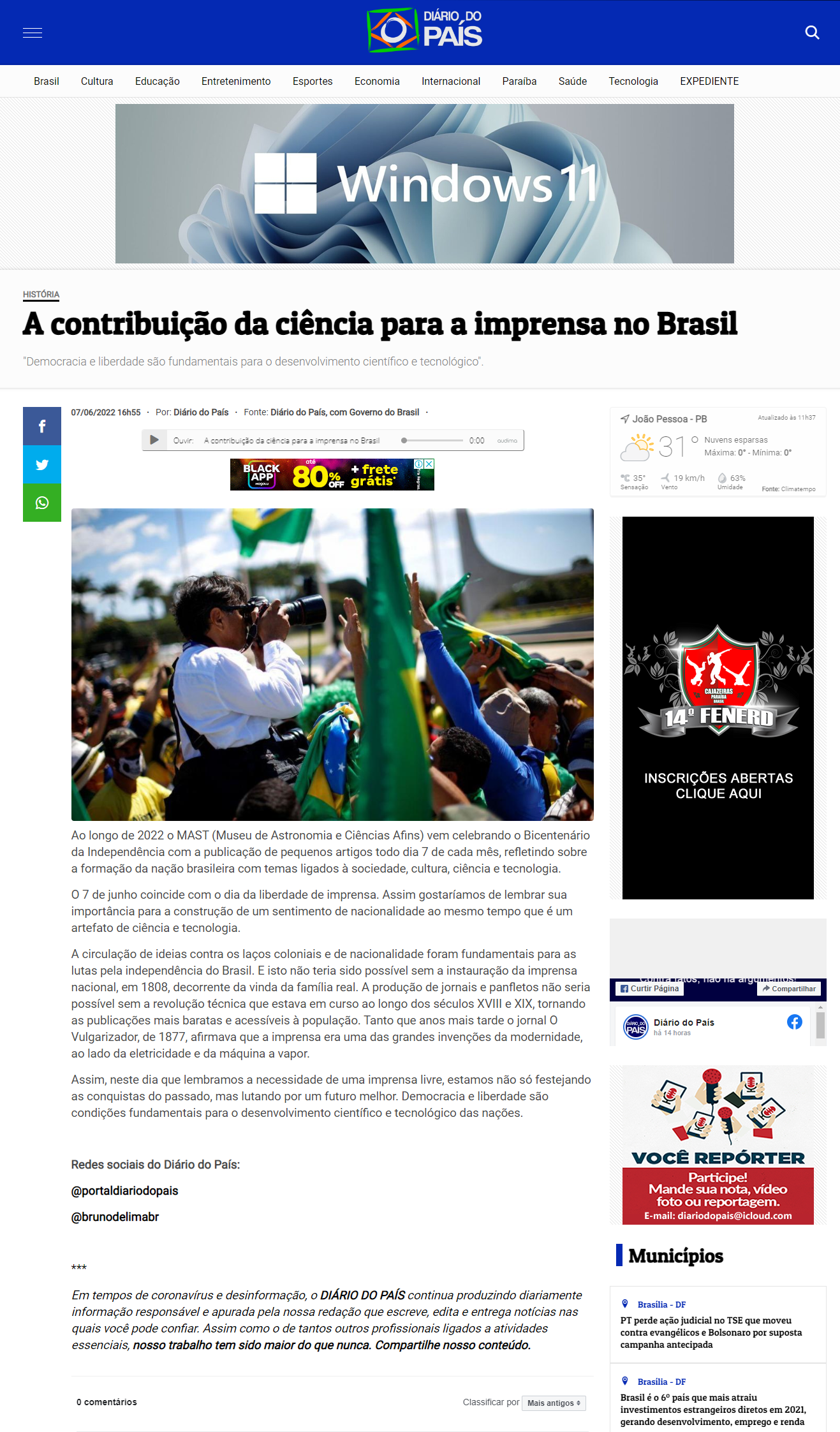 Portal Diário do País (João Pessoa-PB) - MAST celebra 'A contribuição da ciência para a imprensa no Brasil