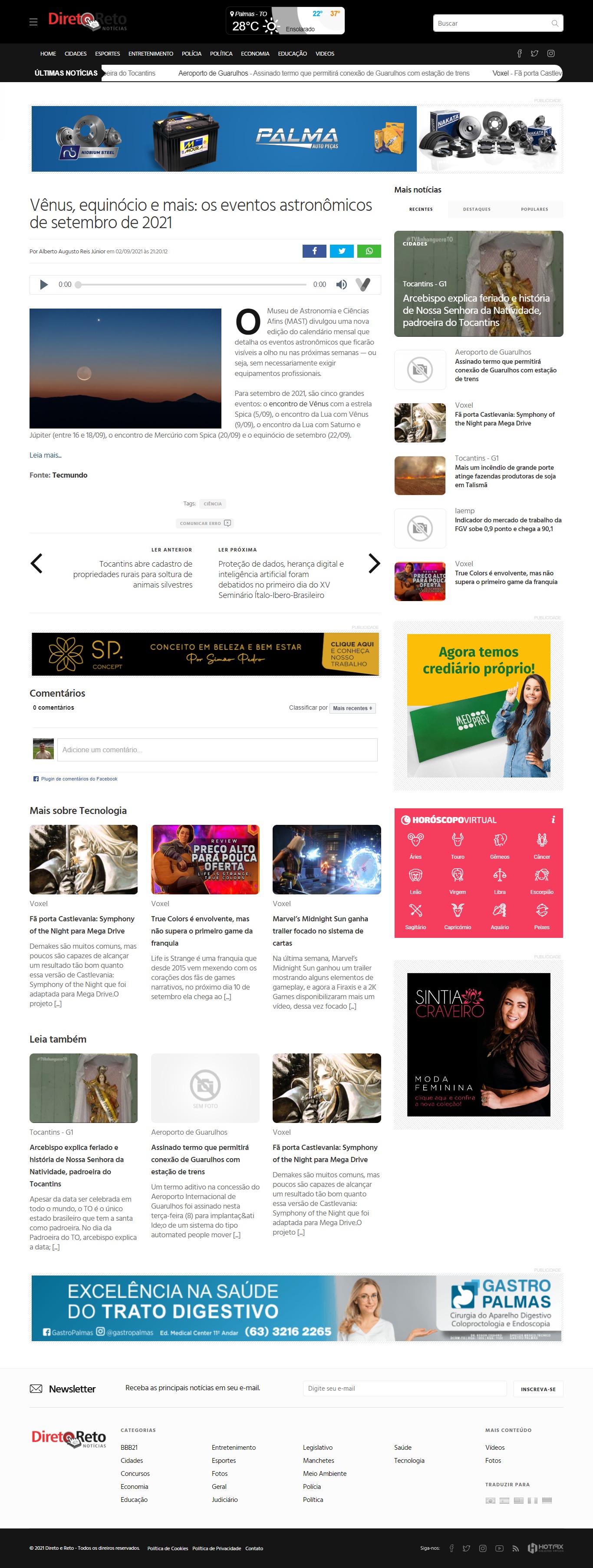 Portal Direto e Reto Notícias (Palmas-TO) - MAST na reportagem 'Vênus, equinócio e mais: os eventos astronômicos de setembro de 2021'