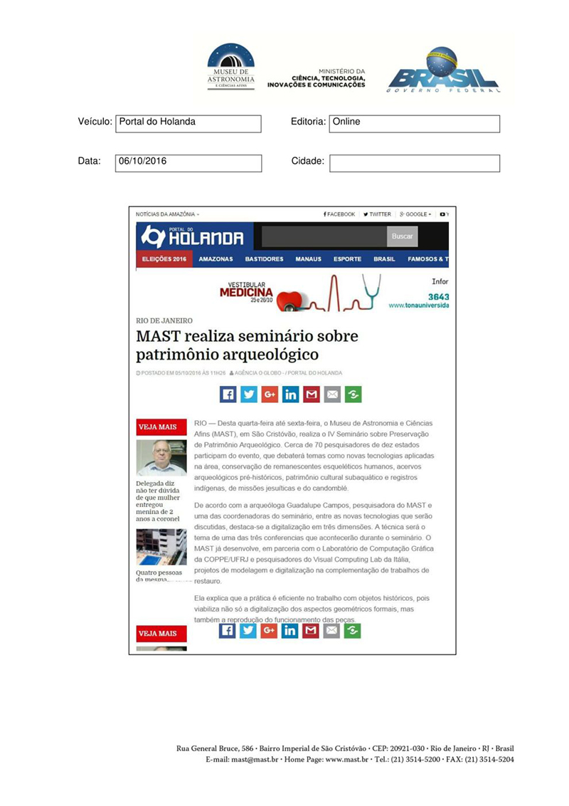 Portal do Holanda | MAST realiza Seminário sobre Patrimônio Arqueológico