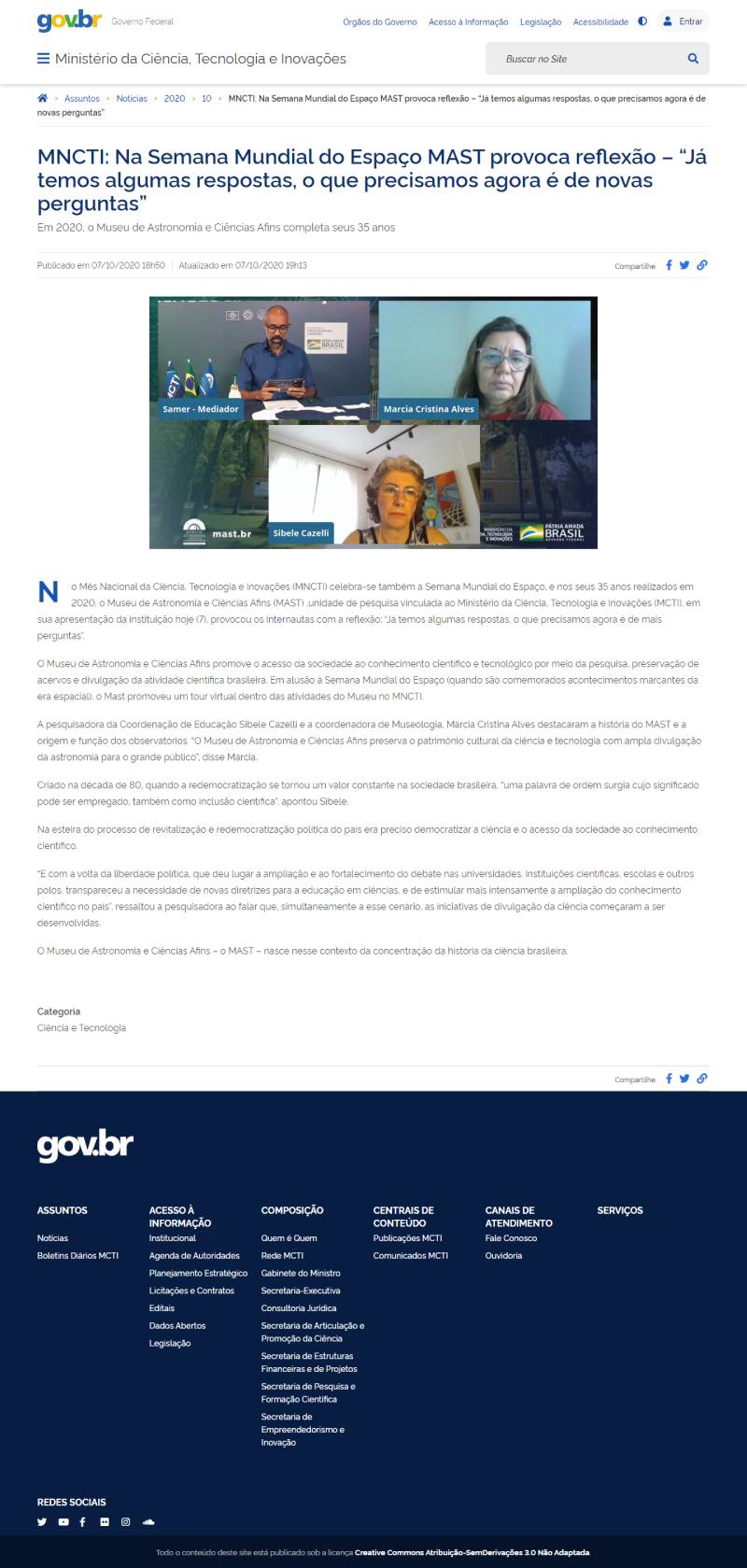 Portal do MCTI | MNCTI: Na Semana Mundial do Espaço MAST provoca reflexão – “Já temos algumas respostas, o que precisamos agora é de novas perguntas”