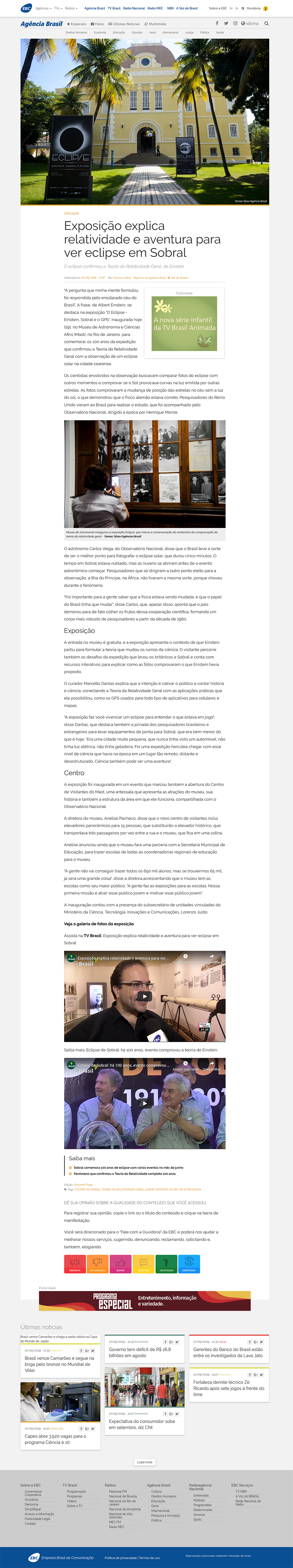 Portal EBC - Agência Brasil | Exposição O Eclipse - Einstein, Sobral e o GPS / Centro de Visitantes do MAST
