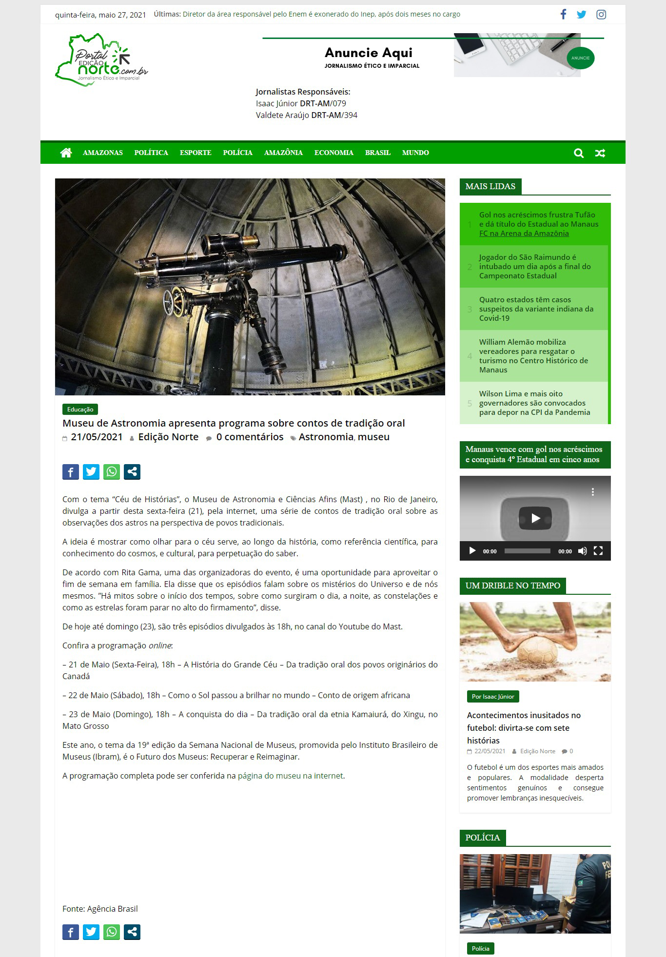 Portal Edição Norte (Manaus-AM) - MAST para toda a família na 19ª Semana Nacional de Museus