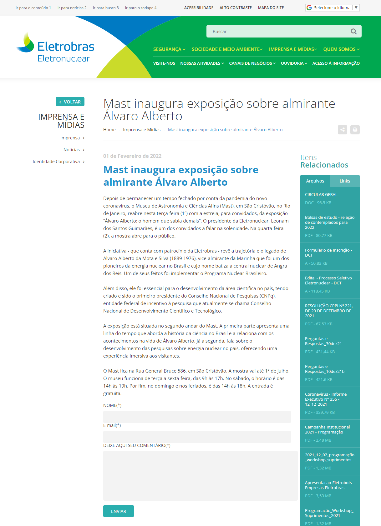 Portal Eletronuclear - MAST reabre com exposição sobre Álvaro Alberto