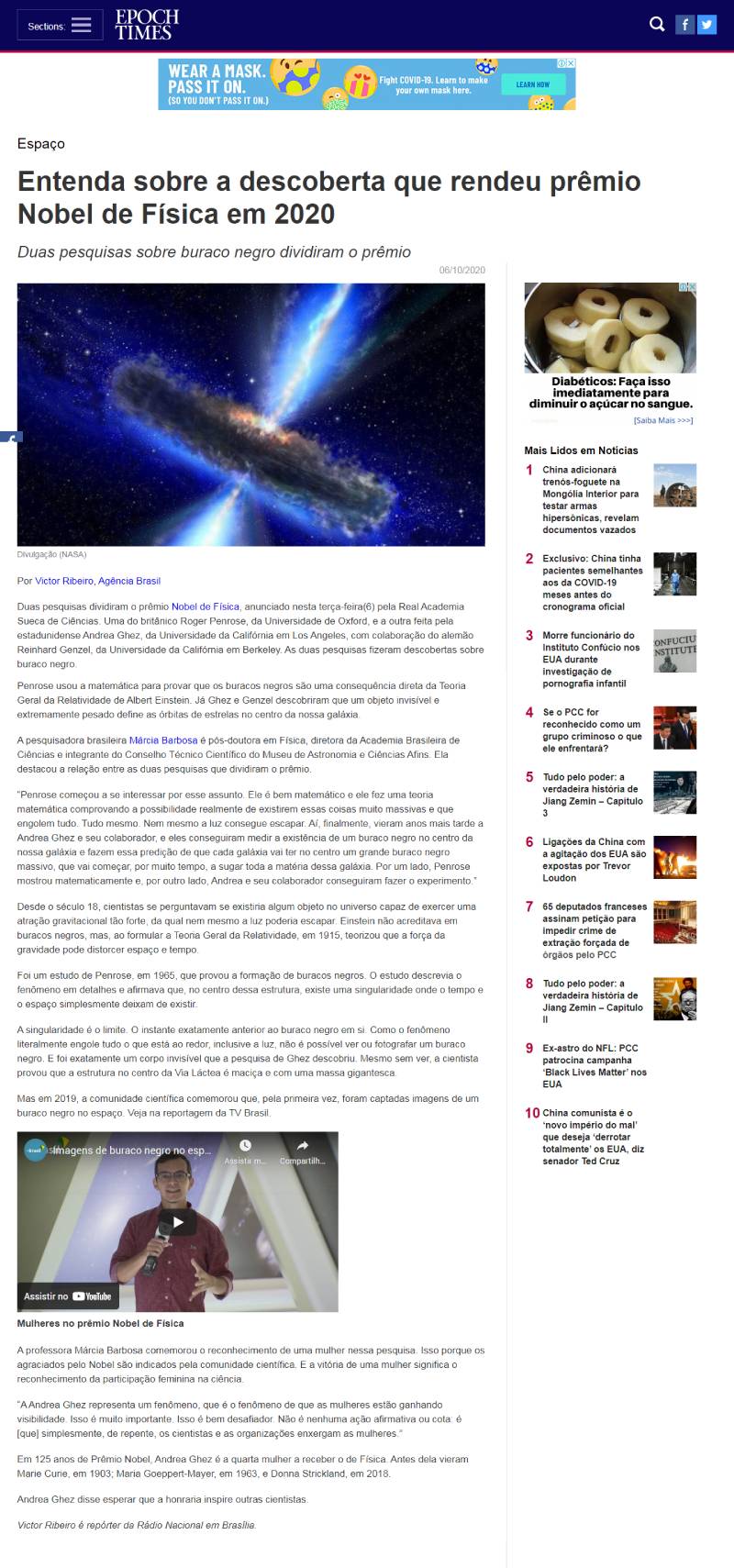 Portal Epoch Times | MAST na reportagem "Entenda sobre a descoberta que rendeu prêmio Nobel de Física em 2020"