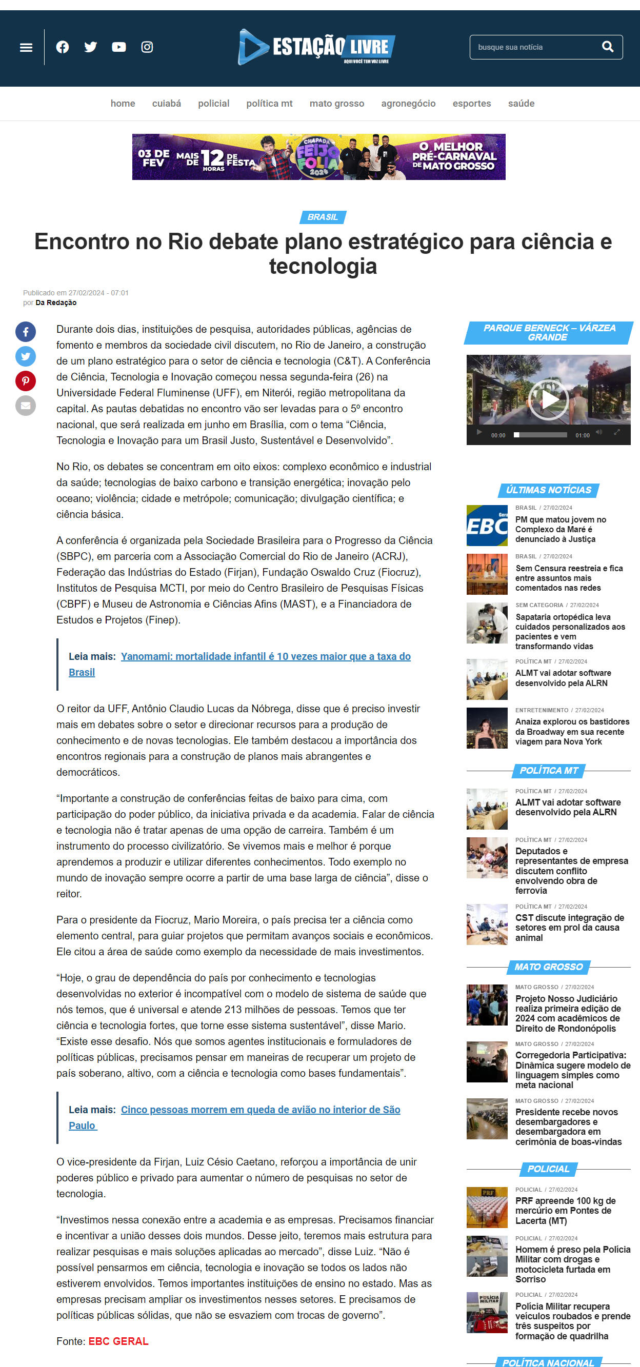 Portal Estação Livre - Encontro no Rio debate plano estratégico para ciência e tecnologia