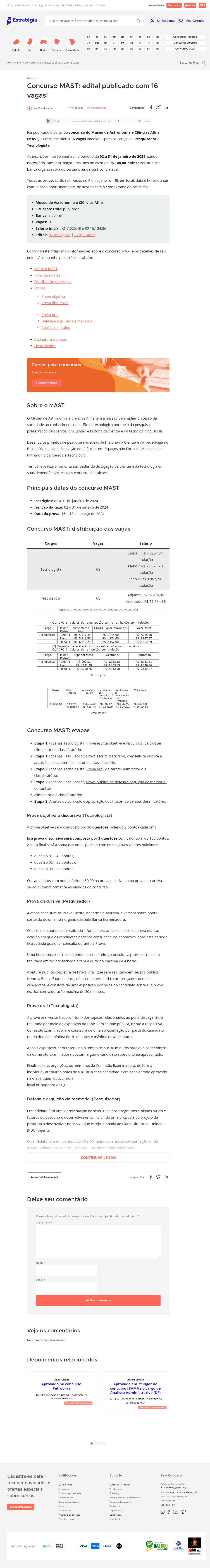 Portal Estratégia - Concurso MAST: edital publicado com 16 vagas!