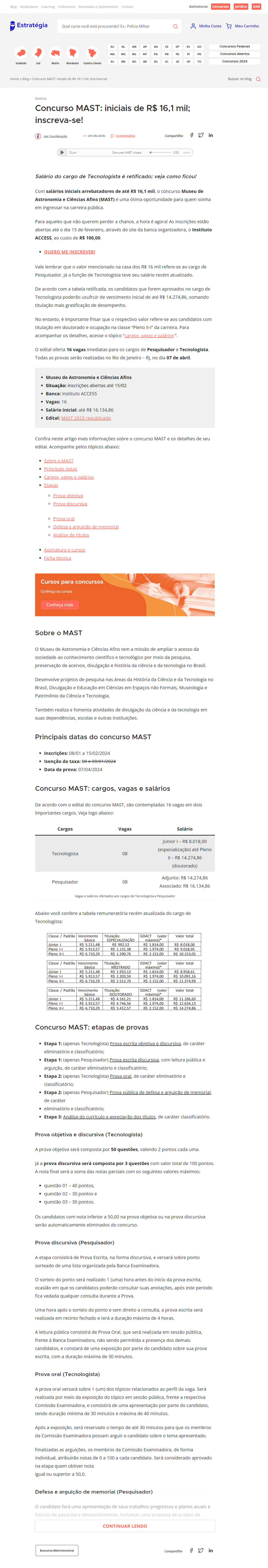 Portal Estratégia - Concurso MAST: iniciais de R$ 16,1 mil; inscreva-se!