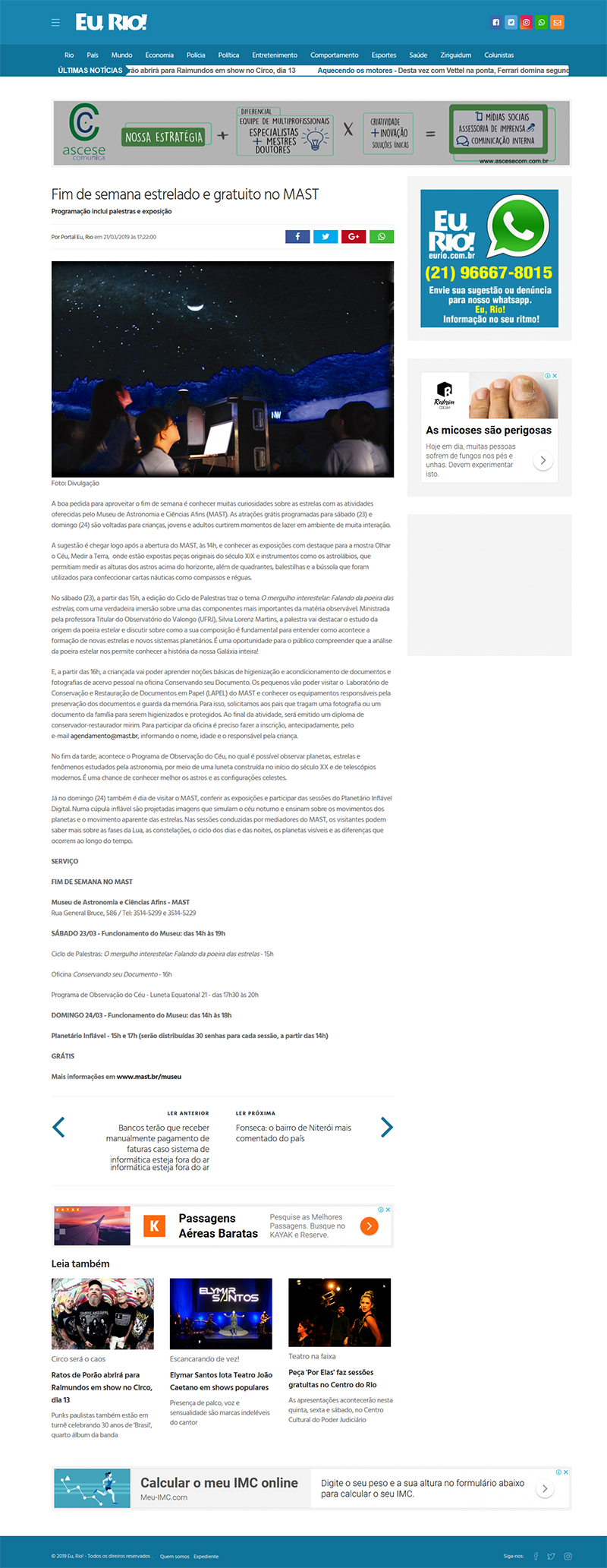 Portal Eu, Rio | Fim de Semana estrelado e gratuito no MAST