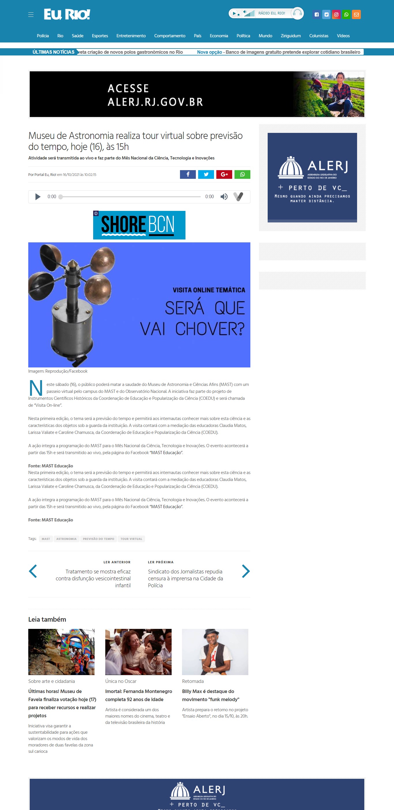 Portal Eu, Rio - MAST/COEDU realiza a 'Visita virtual do projeto de Instrumentos Científicos Históricos', na programação do MNCTI 2021