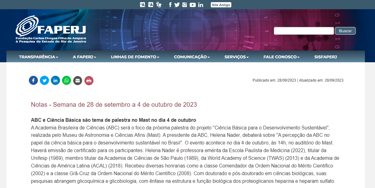 Portal FAPERJ - ABC e Ciência Básica são tema de palestra no Mast no dia 4 de outubro