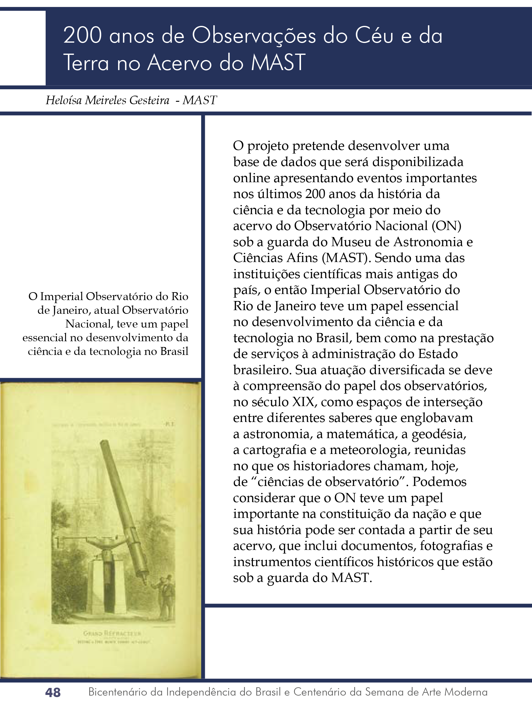 Portal FAPERJ / Livro do Bicentenário da Independência - MAST no artigo de Heloisa Gesteira "200 anos de Observações do Céu e da Terra no Acervo do MAST"
