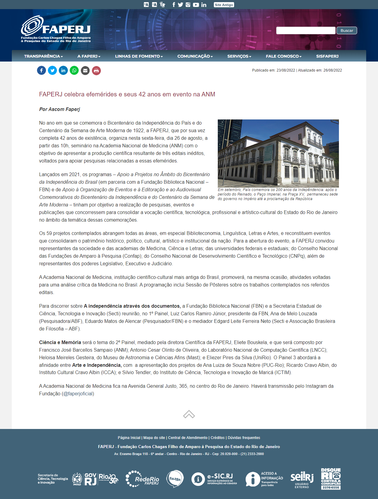 Portal FAPERJ - MAST na reportagem "FAPERJ celebra efemérides e seus 42 anos em evento na ANM"