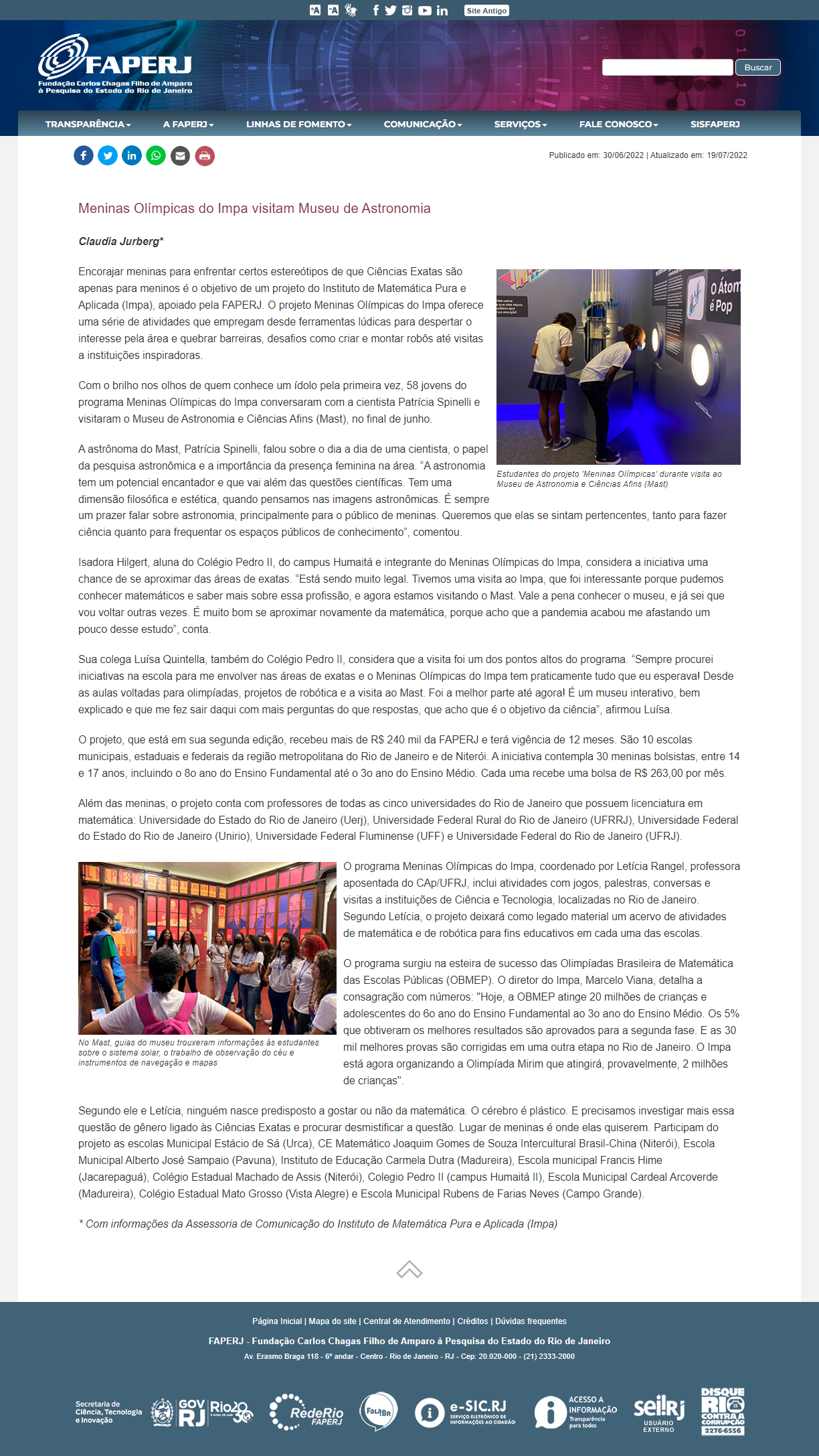 Portal FAPERJ - Meninas Olímpicas do IMPA visitam Museu de Astronomia