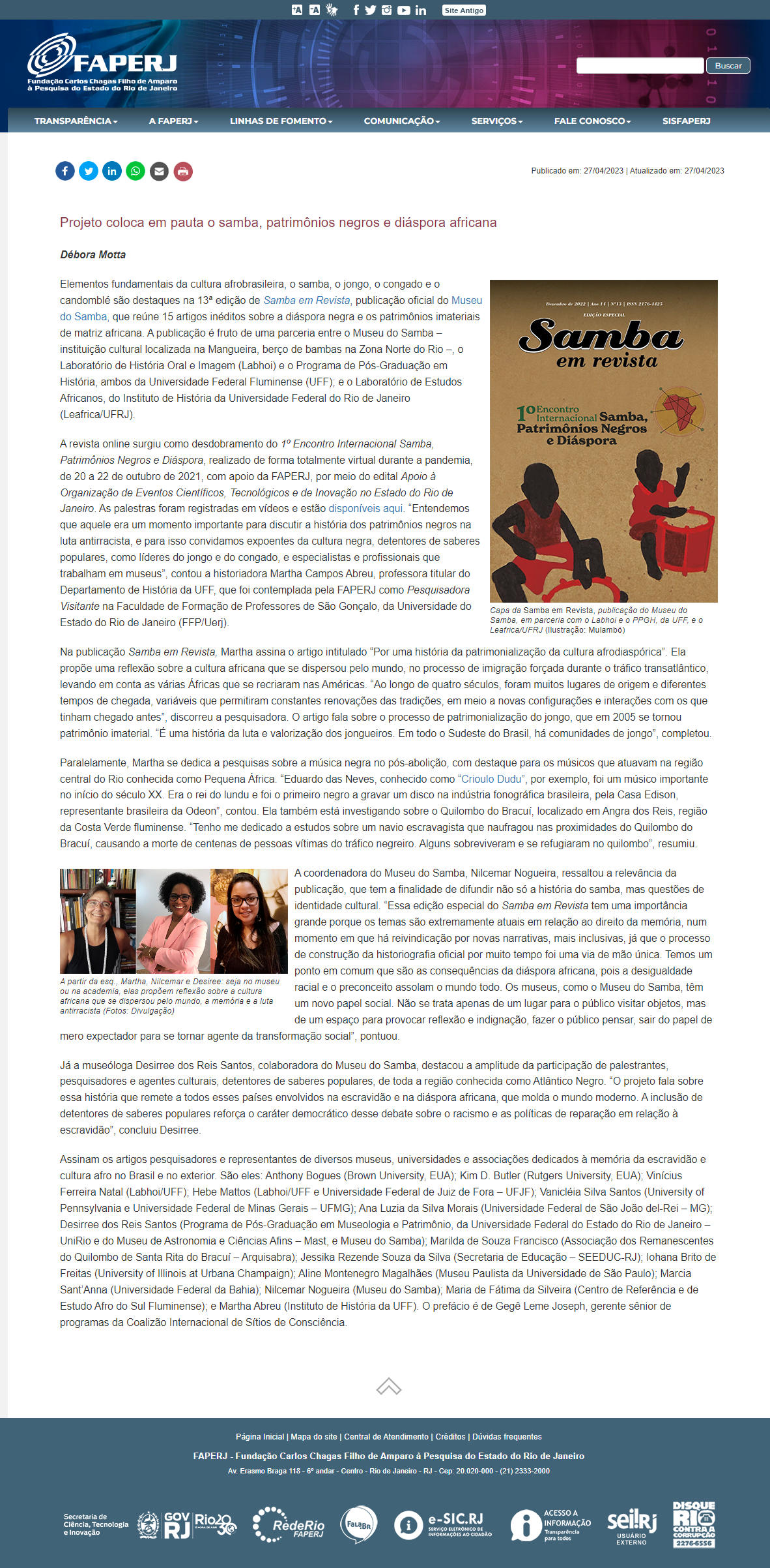Portal FAPERJ - Projeto coloca em pauta o samba, patrimônios negros e diáspora africana