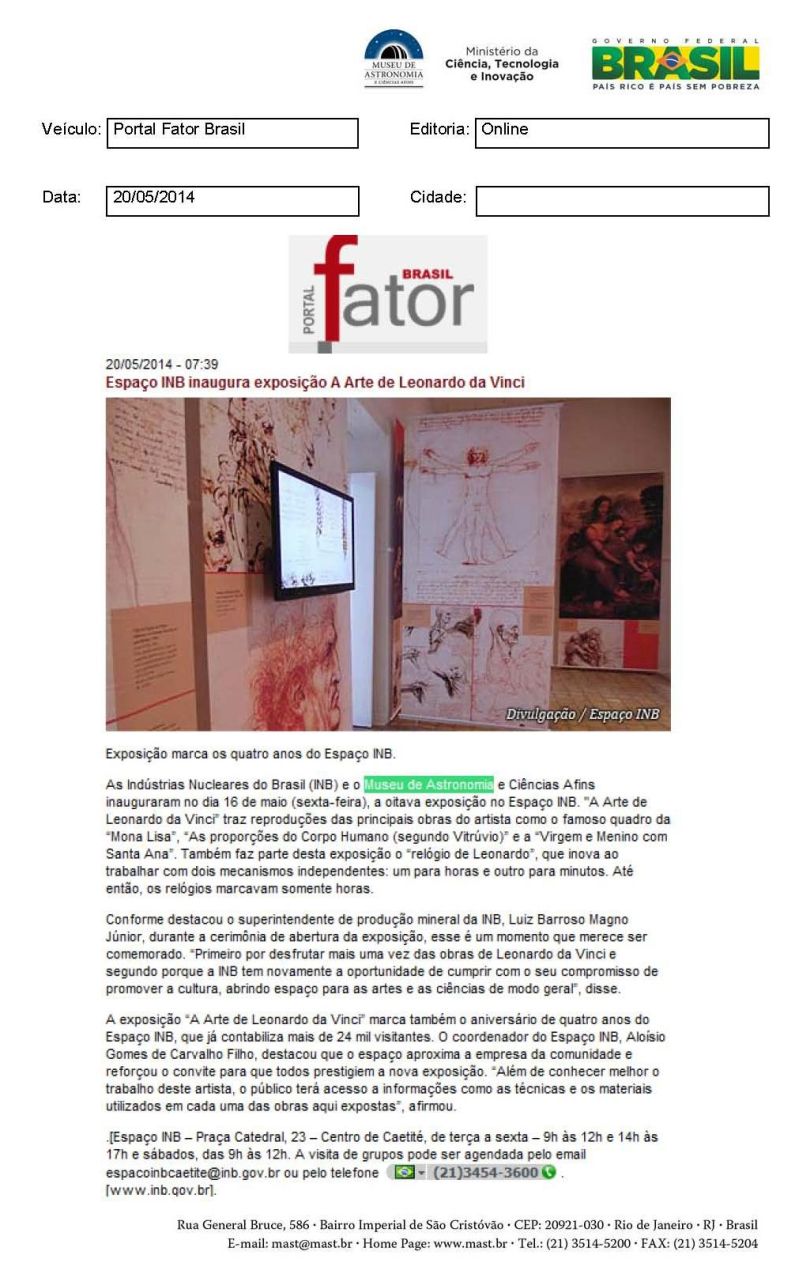 Portal Fator Brasil | Espaço INB inaugura exposição A Arte de Leonardo da Vinci