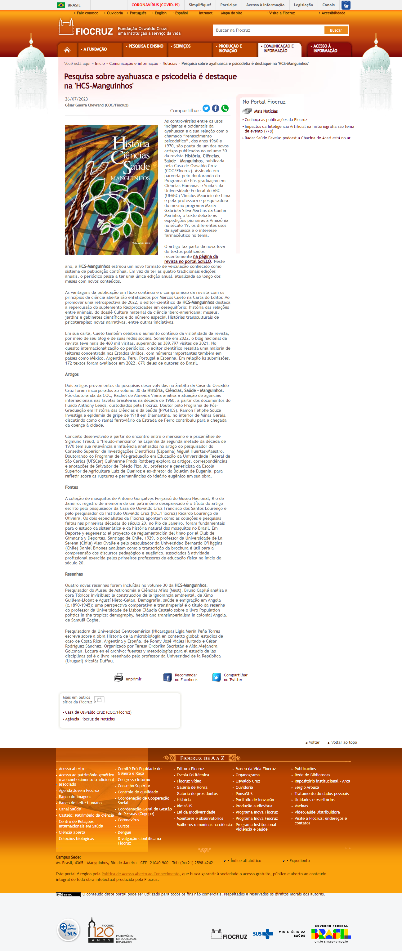 Portal Fiocruz - Pesquisa sobre ayahuasca e psicodelia é destaque na 'HCS-Manguinhos'