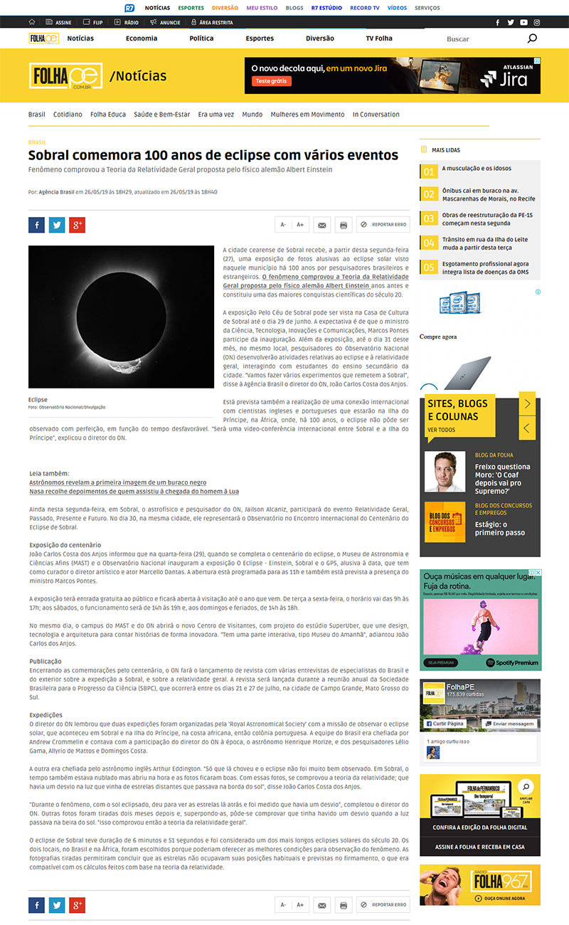 Portal Folhape | Sobral comemora 100 anos de eclipse com vários eventos