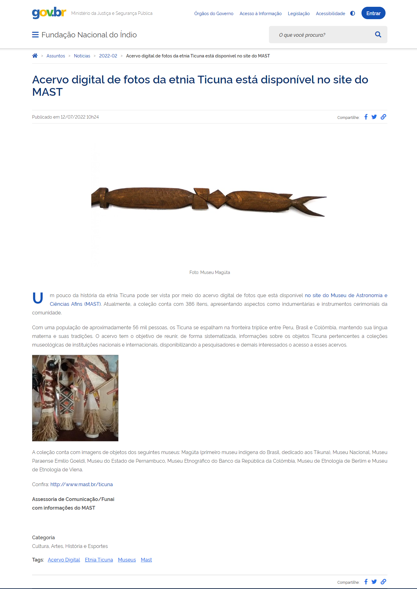 Portal FUNAI - Acervo digital de fotos da etnia Ticuna está disponível no site do MAST