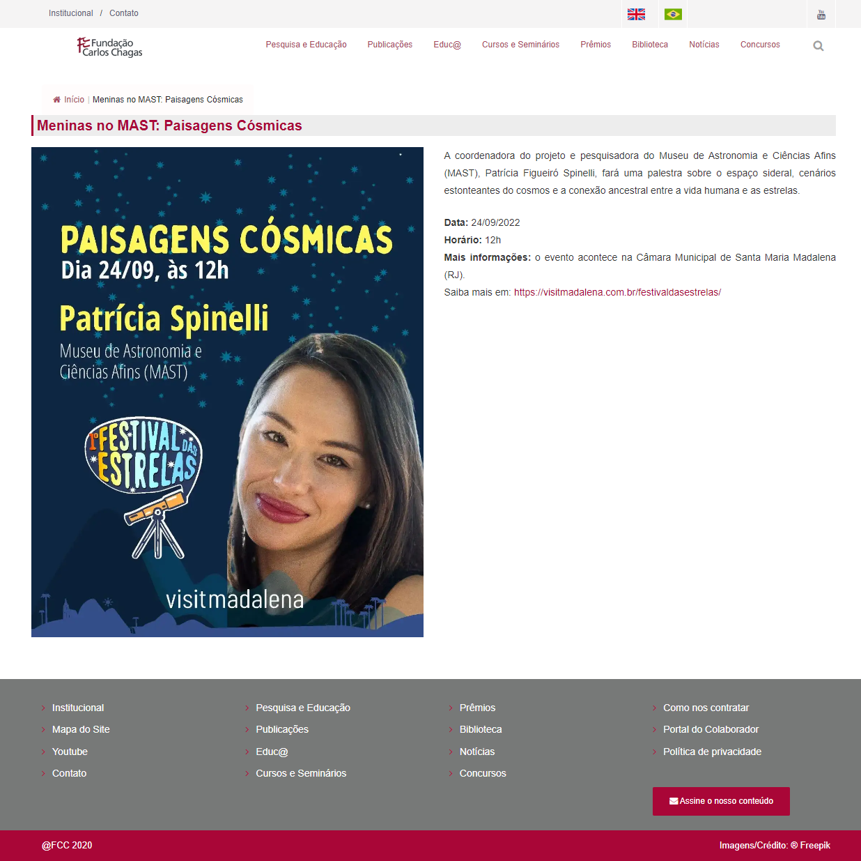 Portal Fundação Carlos Chagas - Projeto Meninas no MAST: Evento Paisagens Cósmicas em Santa Maria Madalena-RJ