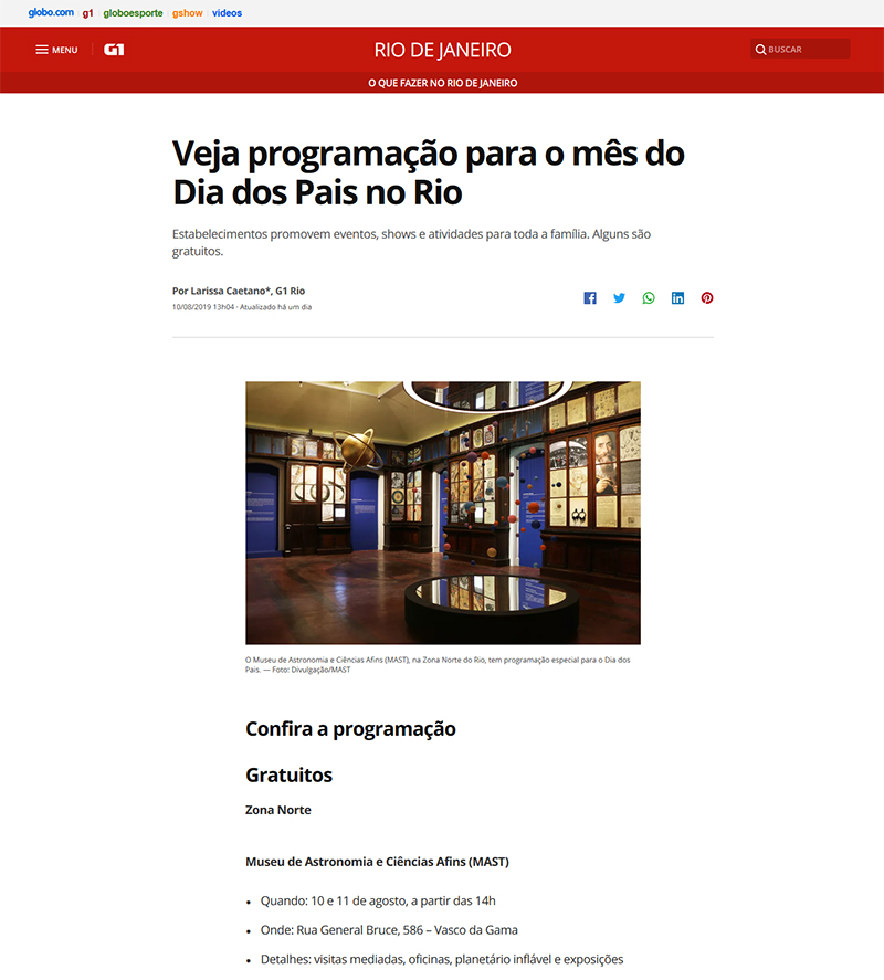Portal G1 | Veja a programação para o mês do Dia dos Pais no Rio