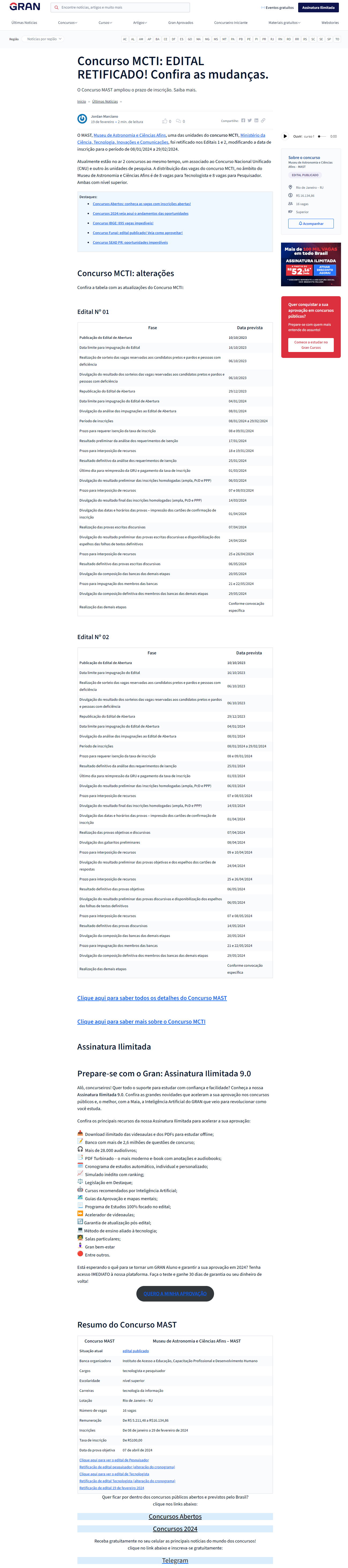 Portal Gran Concursos - Concurso MCTI: EDITAL RETIFICADO! Confira as mudanças
