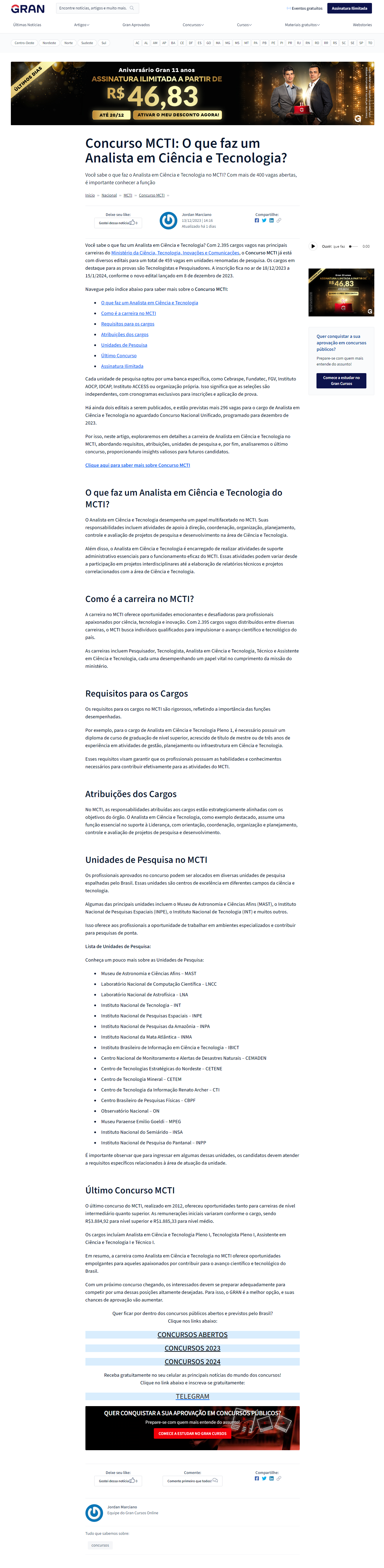 Portal Gran Concursos - Concurso MCTI: O que faz um Analista em Ciência e Tecnologia