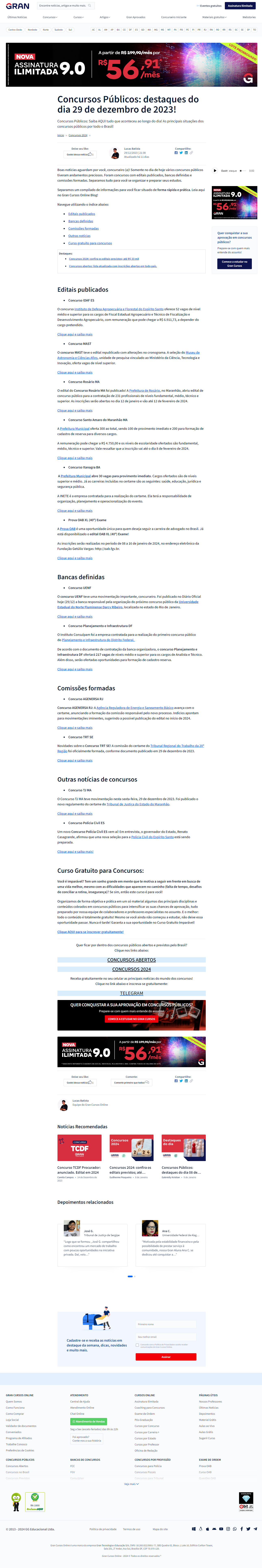 Portal Gran Concursos - Concursos Públicos: destaques do dia 29 de dezembro de 2023!