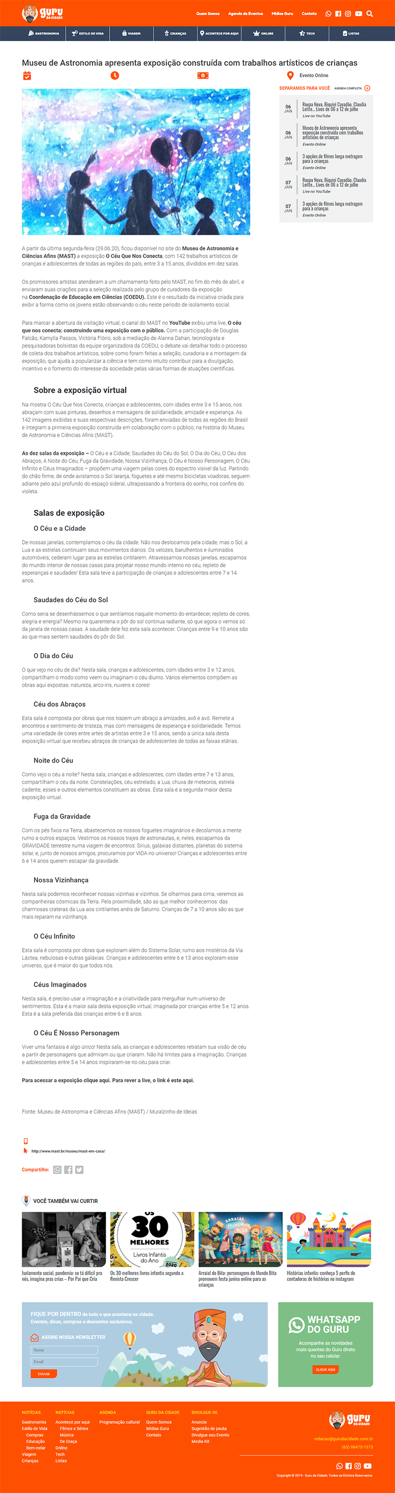 Portal Guru da Cidade (Cuiabá - MT) | MAST Em Casa oferece a mostra virtual 'O Céu Que Nos Conecta'