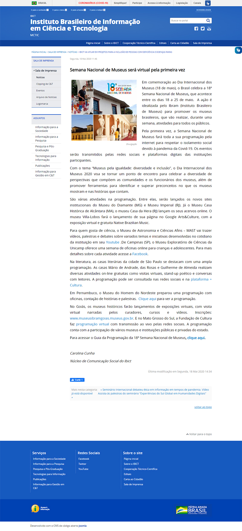 Portal IBICT / Sala de Imprensa (institucional) | MAST na 18ª Semana Nacional de Museus