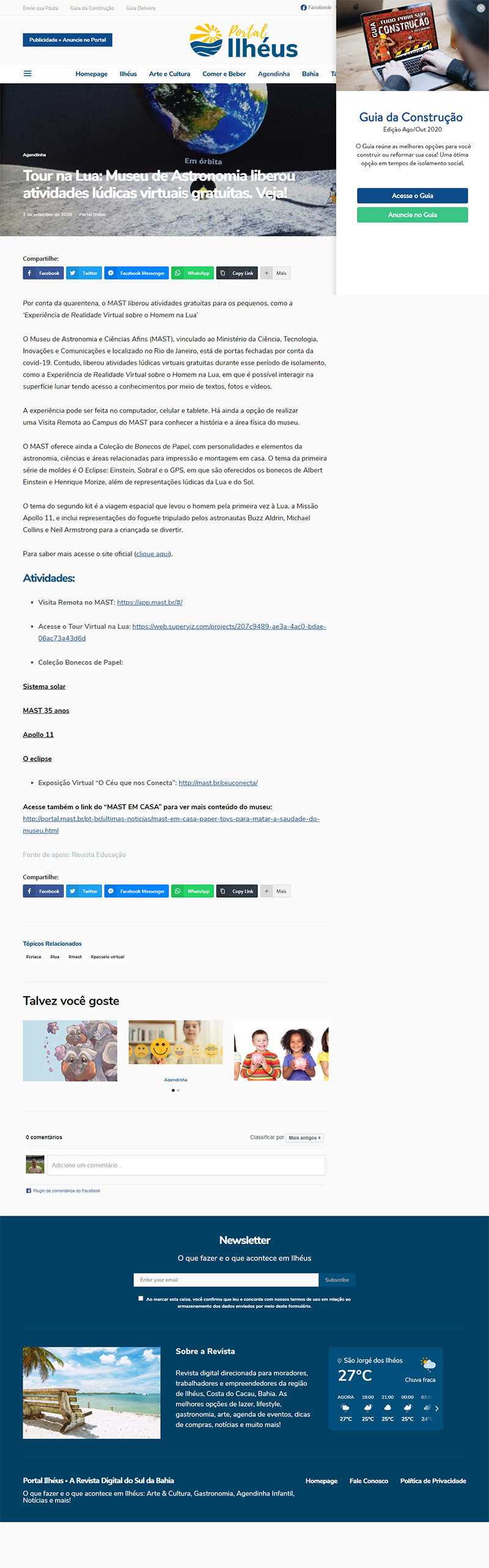 Portal Ilhéus (Ilhéus - BA) | MAST na reportagem "Tour na Lua: Museu de Astronomia liberou atividades lúdicas virtuais gratuitas. Veja!"