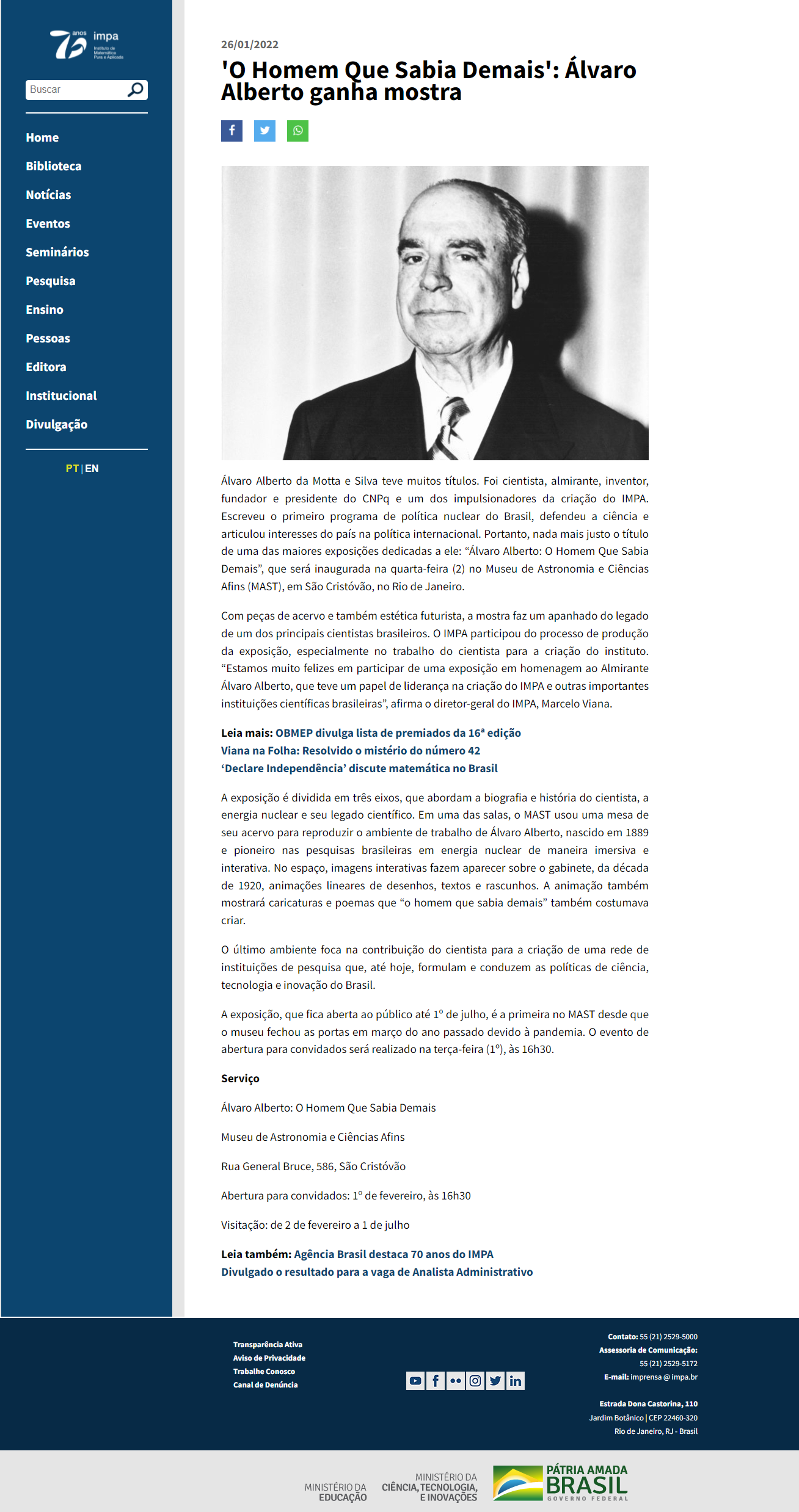 Portal IMPA - MAST reabre com exposição sobre Álvaro Alberto