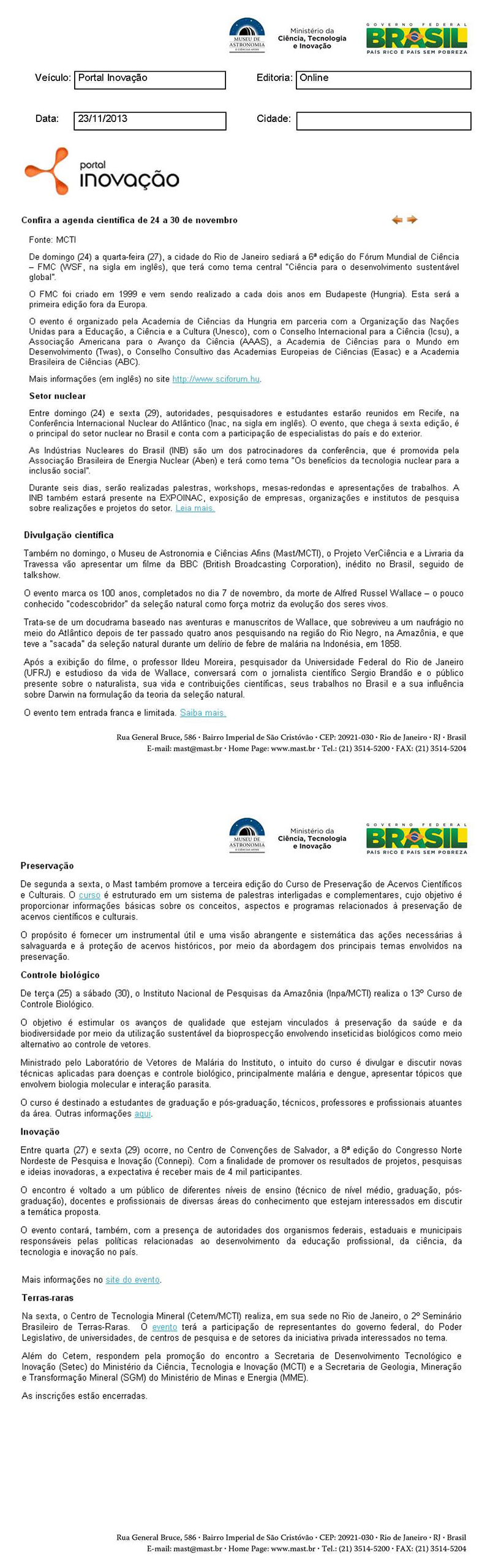 Portal Inovação | Confira a agenda científica de 24 a 30 de novembro