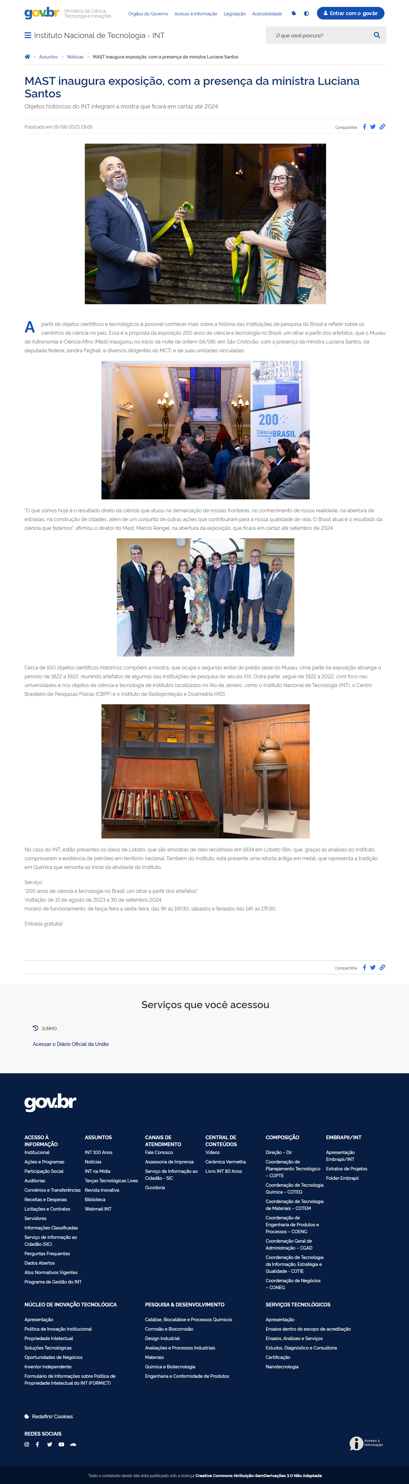 Portal Instituto Nacional de Tecnologia (INT) - MAST inaugura exposição, com a presença da ministra Luciana Santos